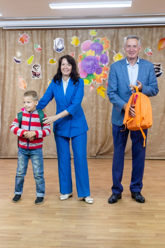 Кульминацией праздника стало вручение школьных рюкзаков с набором канцелярских товаров и общая фотография.