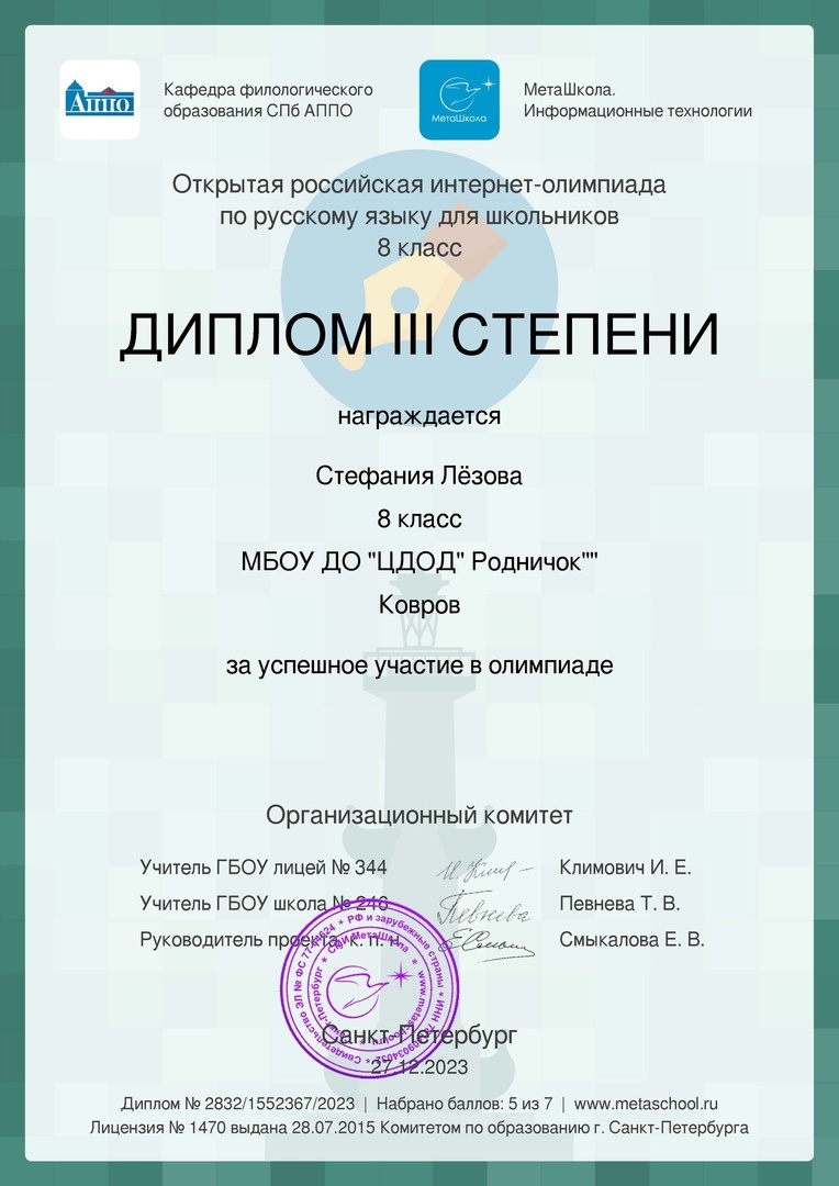 (Творческое объединение "Живое слово" - педагог: Попова Галина Константиновна), которые приняли участие в открытой Российской ИНТЕРНЕТ - олимпиаде по русскому языку для школьников.