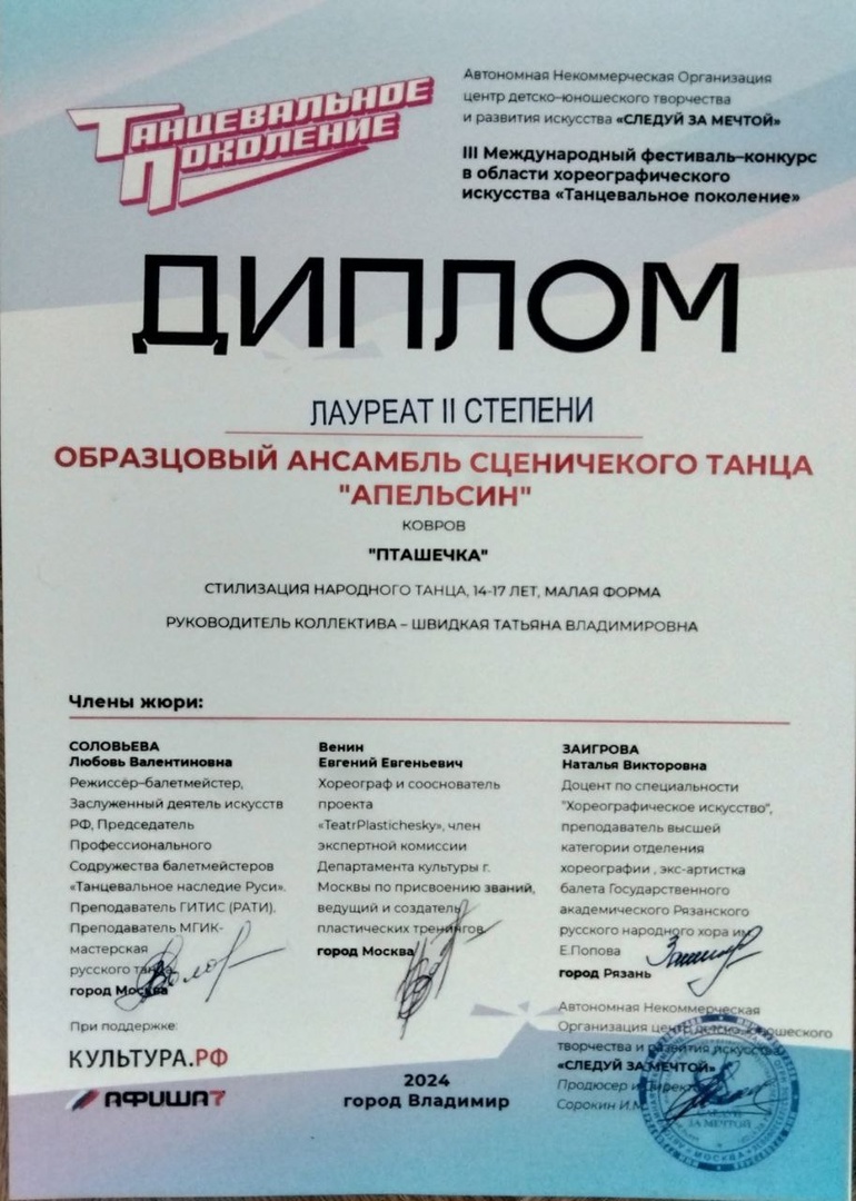 Коллектив ОАСТ "Апельсин" (руководитель: Швидкая Т.В.) принял участие с тремя хореографическими композициями.