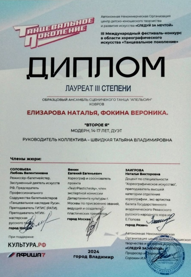 17 февраля во Владимире прошёл Международный фестиваль-конкурс в области хореографического искусства "Танцевальное поколение"