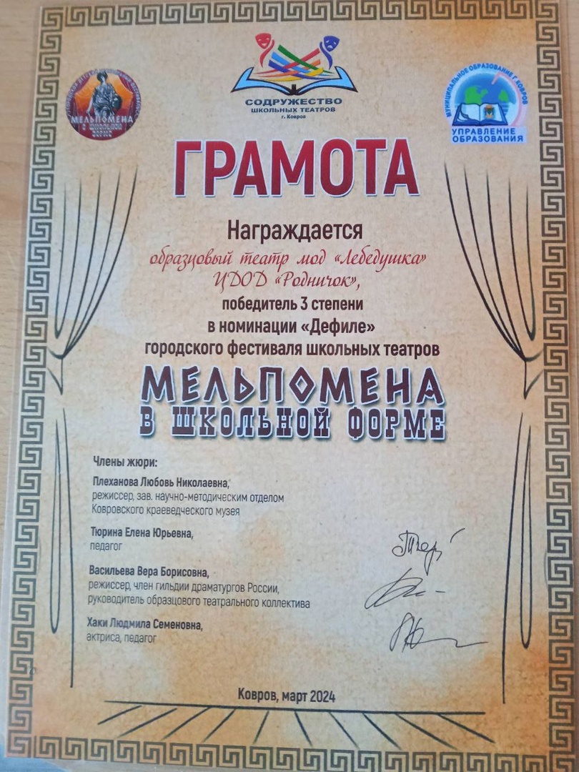 27 марта в Доме детского творчества прошло награждение коллективов, участвовавших в городском театральном фестивале в рамках содружества школьных театров города Коврова.