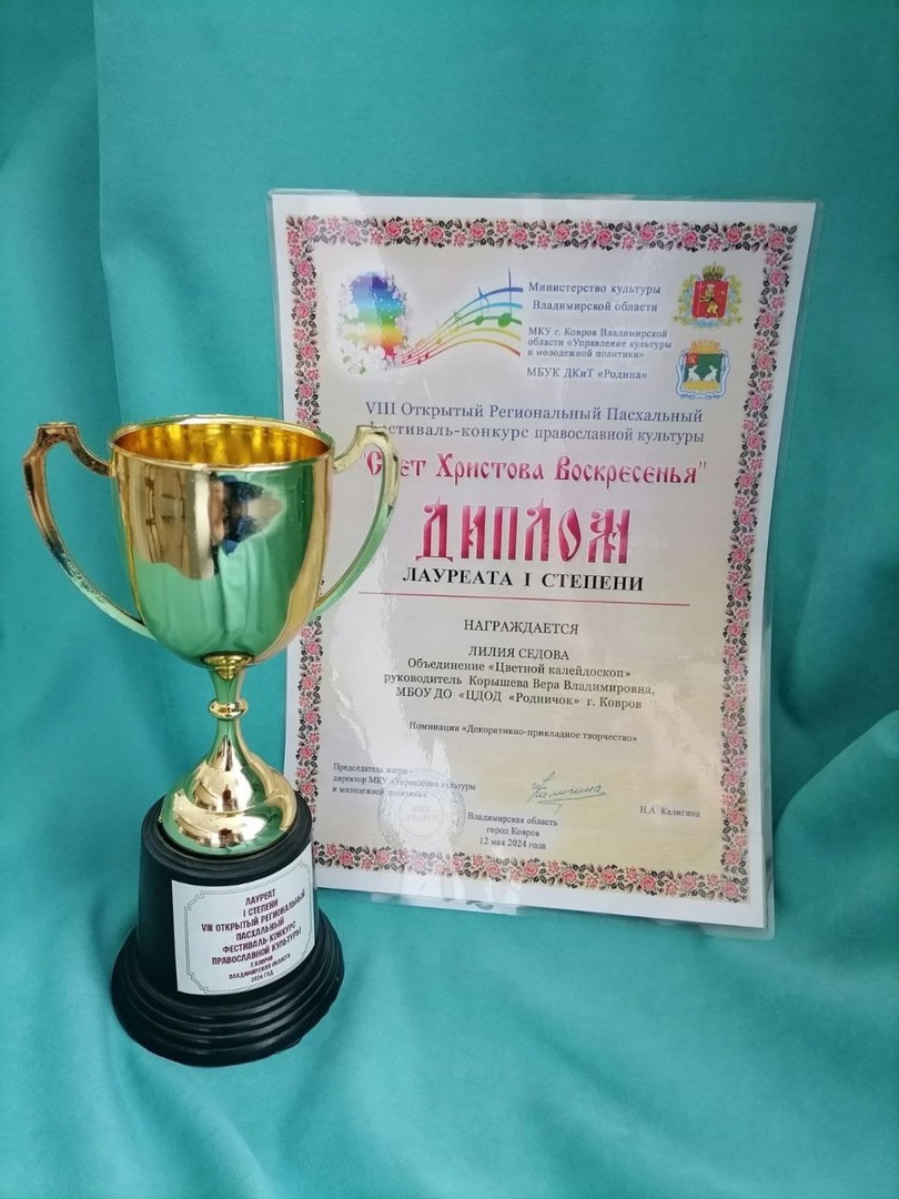 Седова Лилия - диплом лауреата 1 степени - ТО "Цветной калейдоскоп" (педагог: Корышева В.В.)