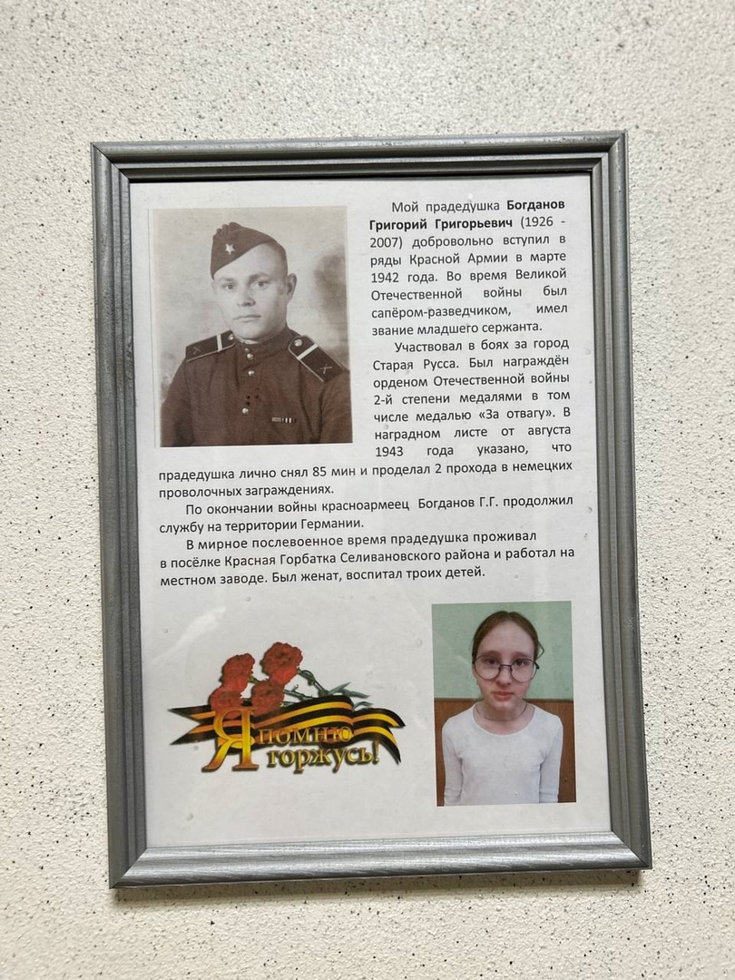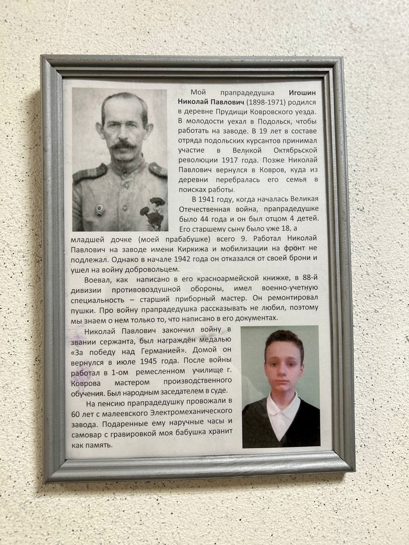 К 80-летию Победы в Великой Отечественной войне ученики творческого объединения "Живое слово" (педагог: Попова Галина Константиновна) подготовили выставку "Семейные истории "Горжусь своим дедом".