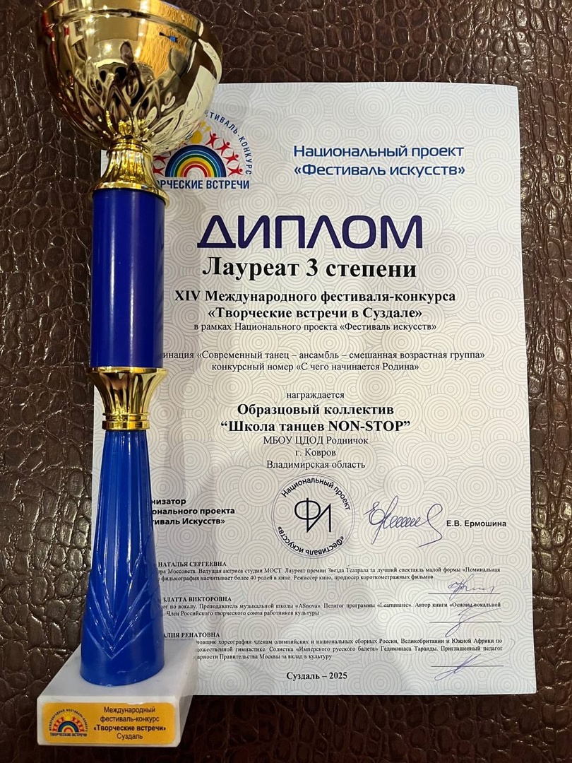 26 апреля воспитанники образцового коллектива школы танца "NON - STOP" (руководитель: Новикова Д.А.) приняли участие в Международном фестивале-конкурсе "Творческие встречи в Суздале"