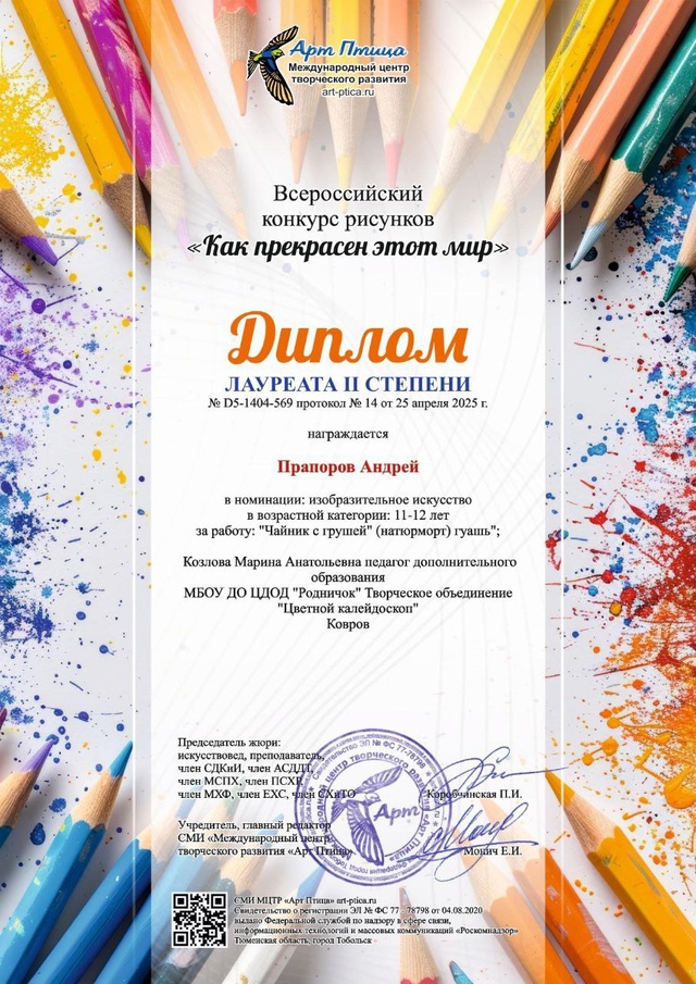 Прапорова Андрея - Лауреата 2 степени Всероссийского конкурса рисунков