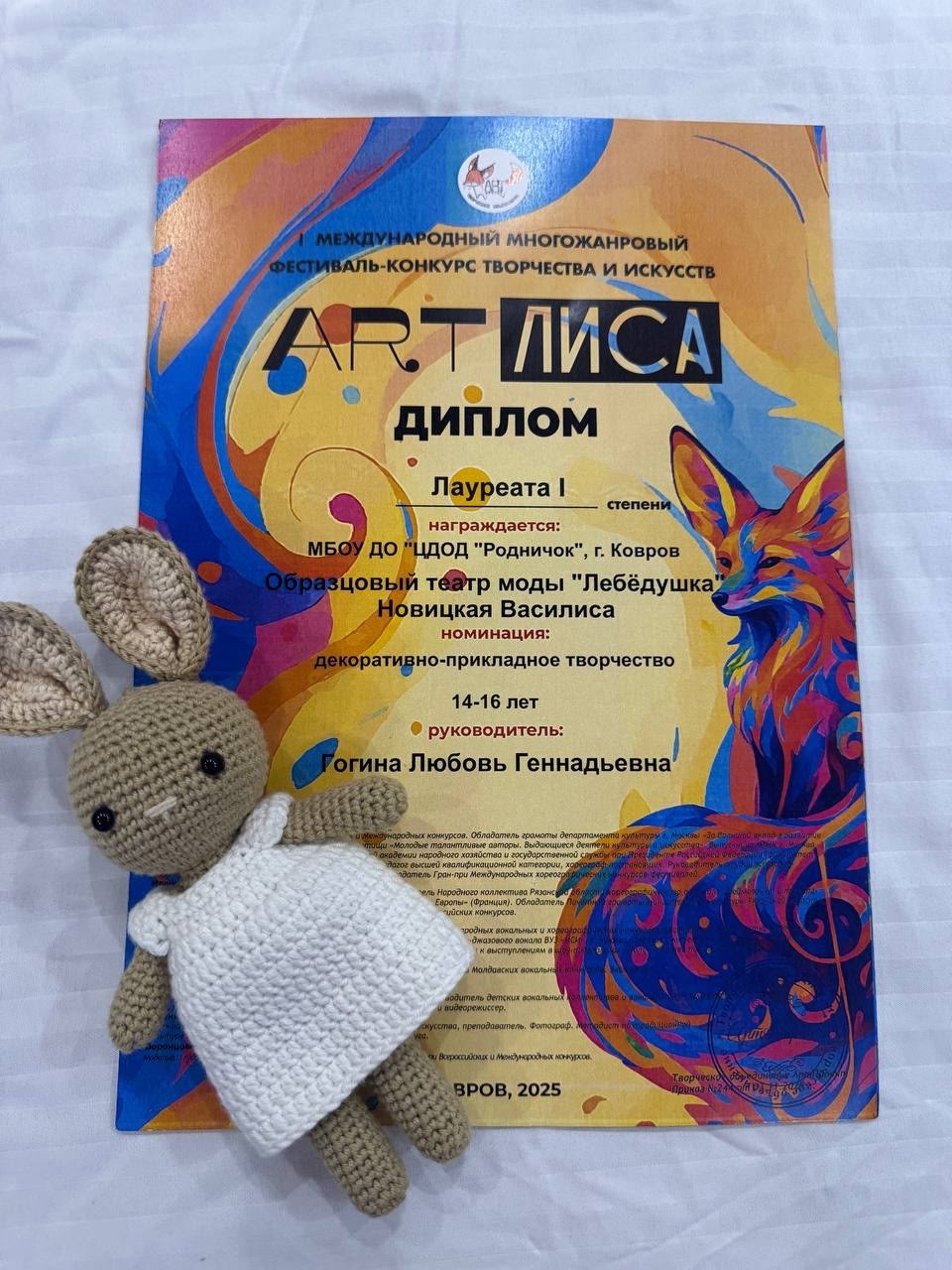 Поздравляем Трубачёву Варвару, Попову Злату и Седову Лилию из творческого объединения "Цветной калейдоскоп" (педагог: Козлова М.А.) с ПОБЕДОЙ!