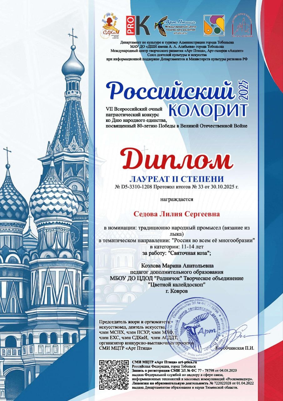 с победами на Всероссийском патриотическом конкурсе "Российский колорит".