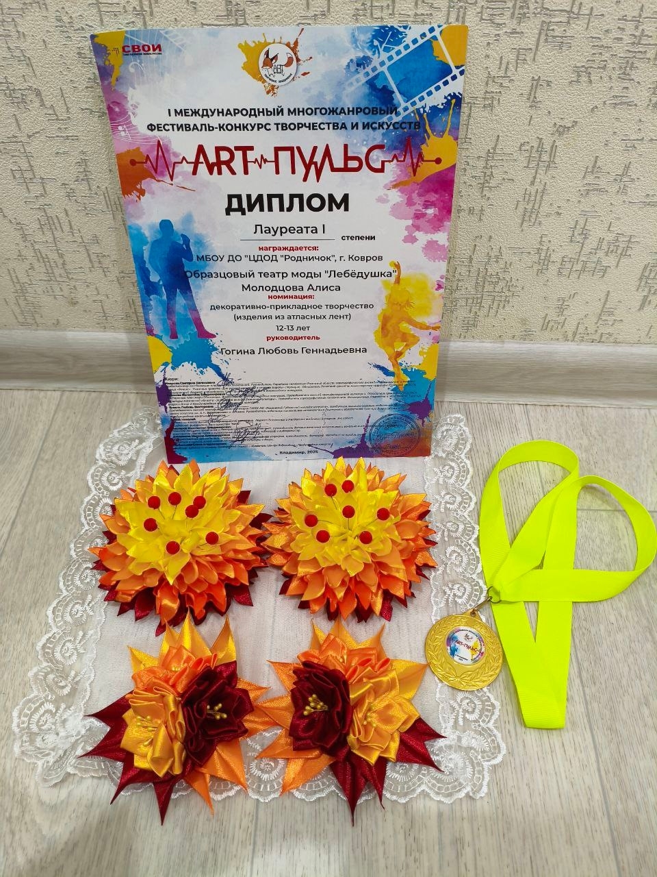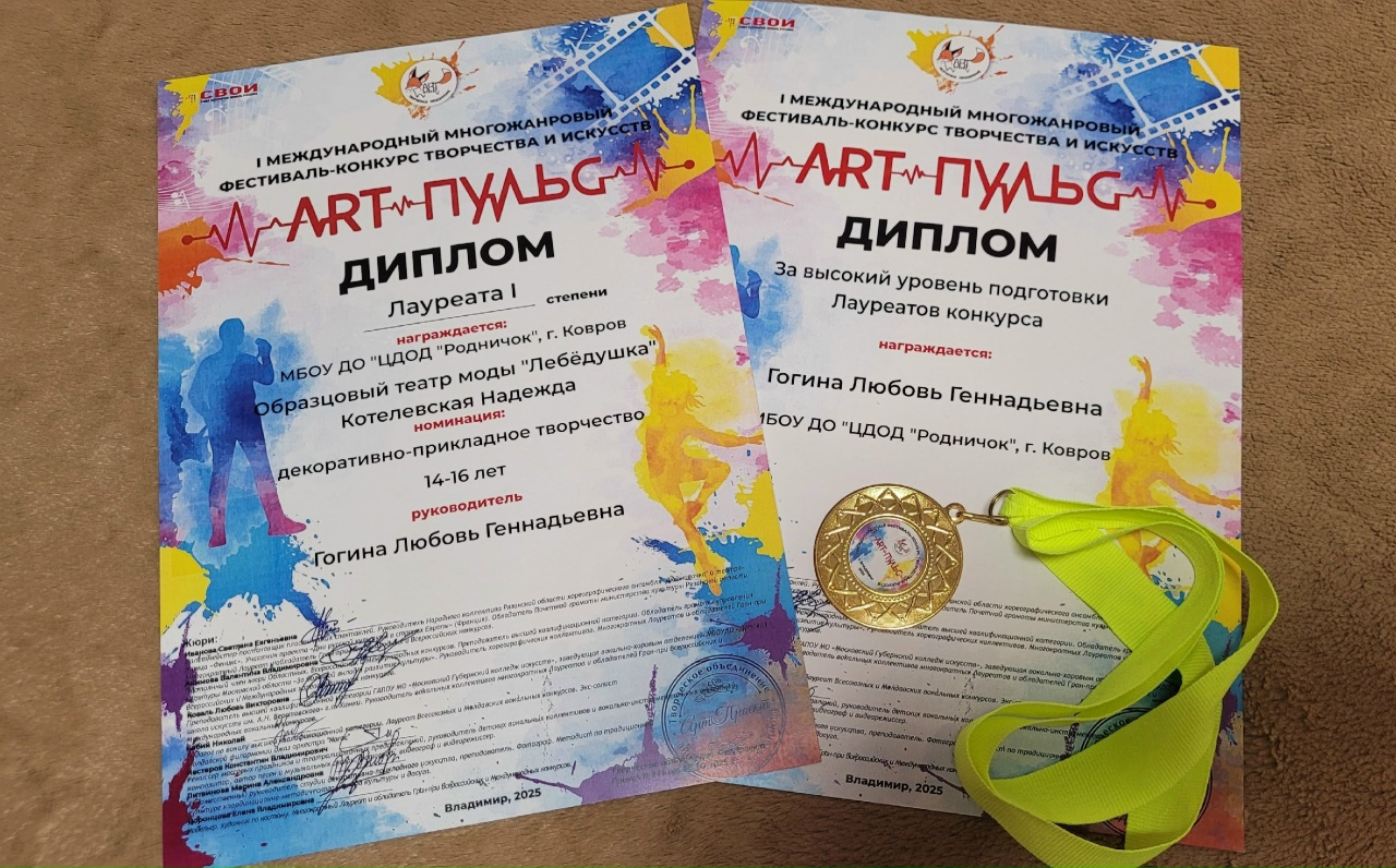 -Образцовый театр моды "Лебёдушка" (руководитель: Гогина Л.Г.) в номинации "Мода и дизайн" с коллекцией "Собирала лето по узорам".