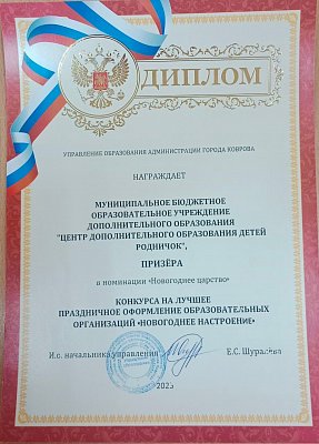 Мы стали призёрами в номинации "Волшебное царство" (оформление внутренних помещений) конкурса на лучшее праздничное оформление муниципальных образовательных организаций "Новогоднее настроение".