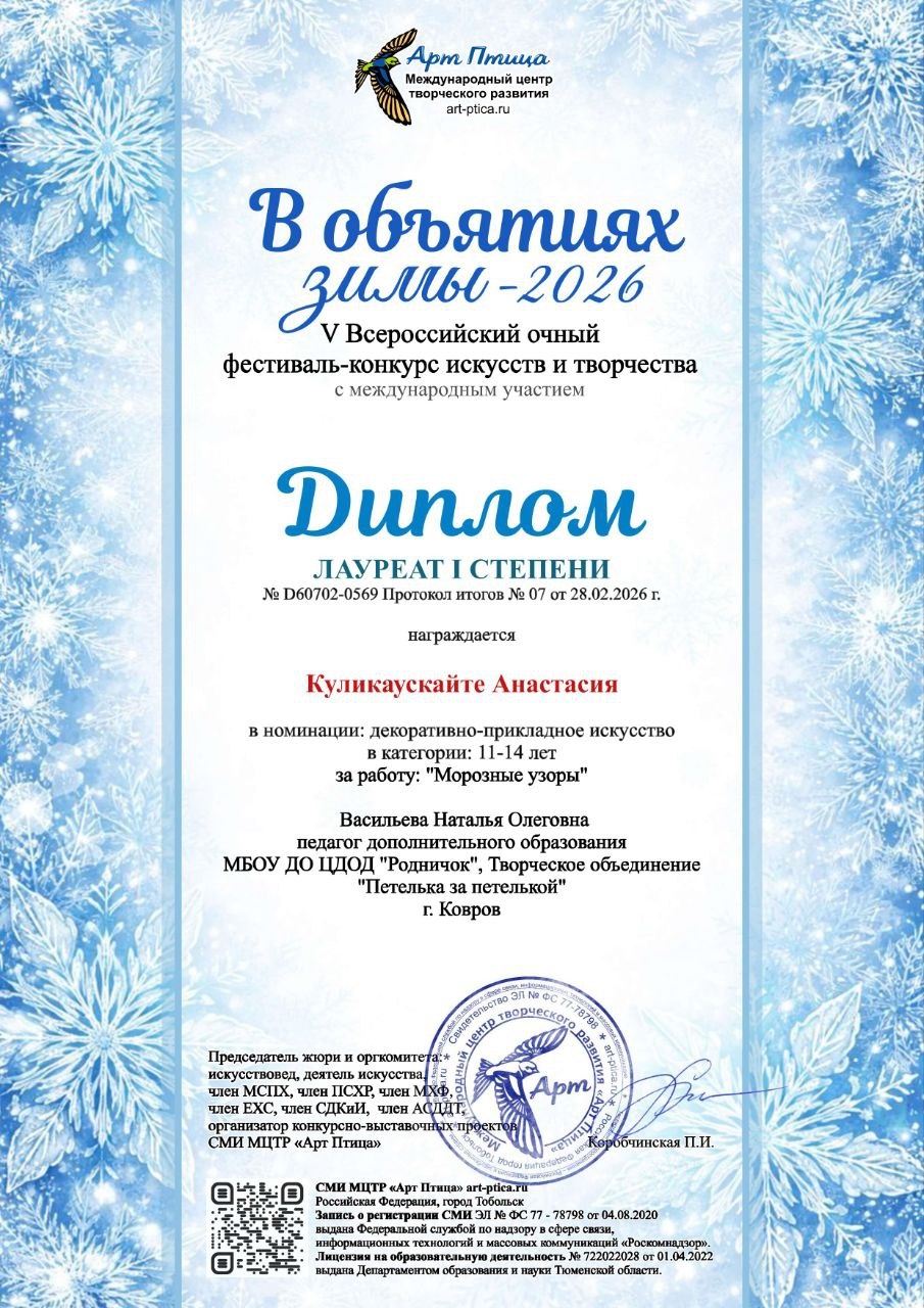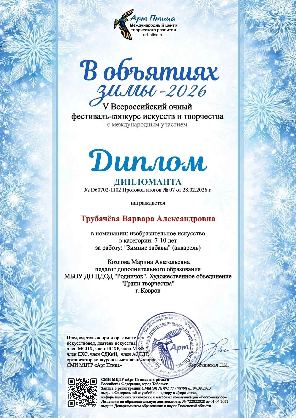 ПОЗДРАВЛЯЕМ с участием и победами на Всероссийском фестивале-конкурсе «В объятиях зимы»: