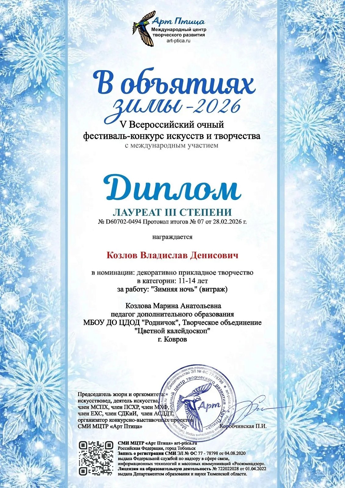 - Козлова Владислава - диплом Лауреата 3 степени.
