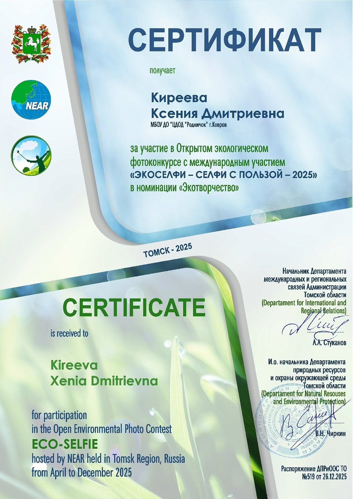 Вот и дождались мы результатов по экологическому фотоконкурсу с Международным участием "Экоселфи - селфи с пользой".