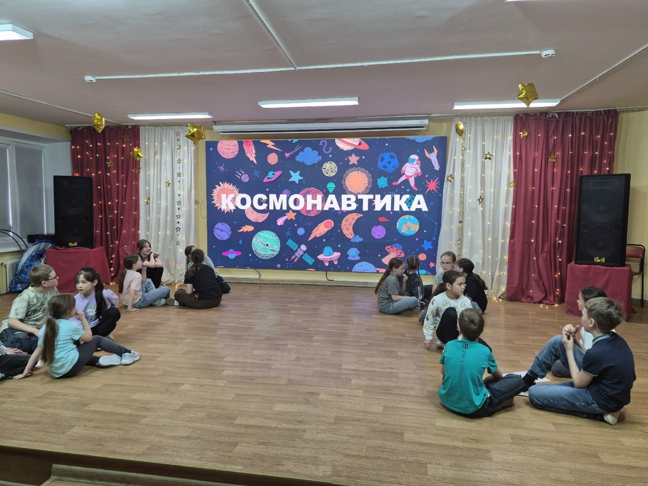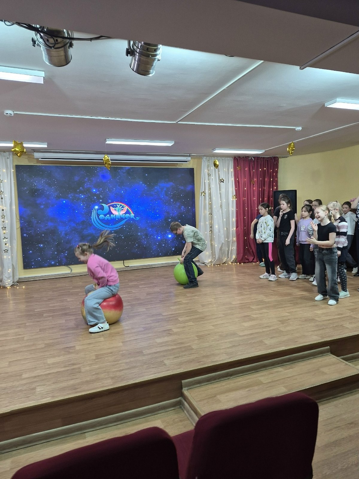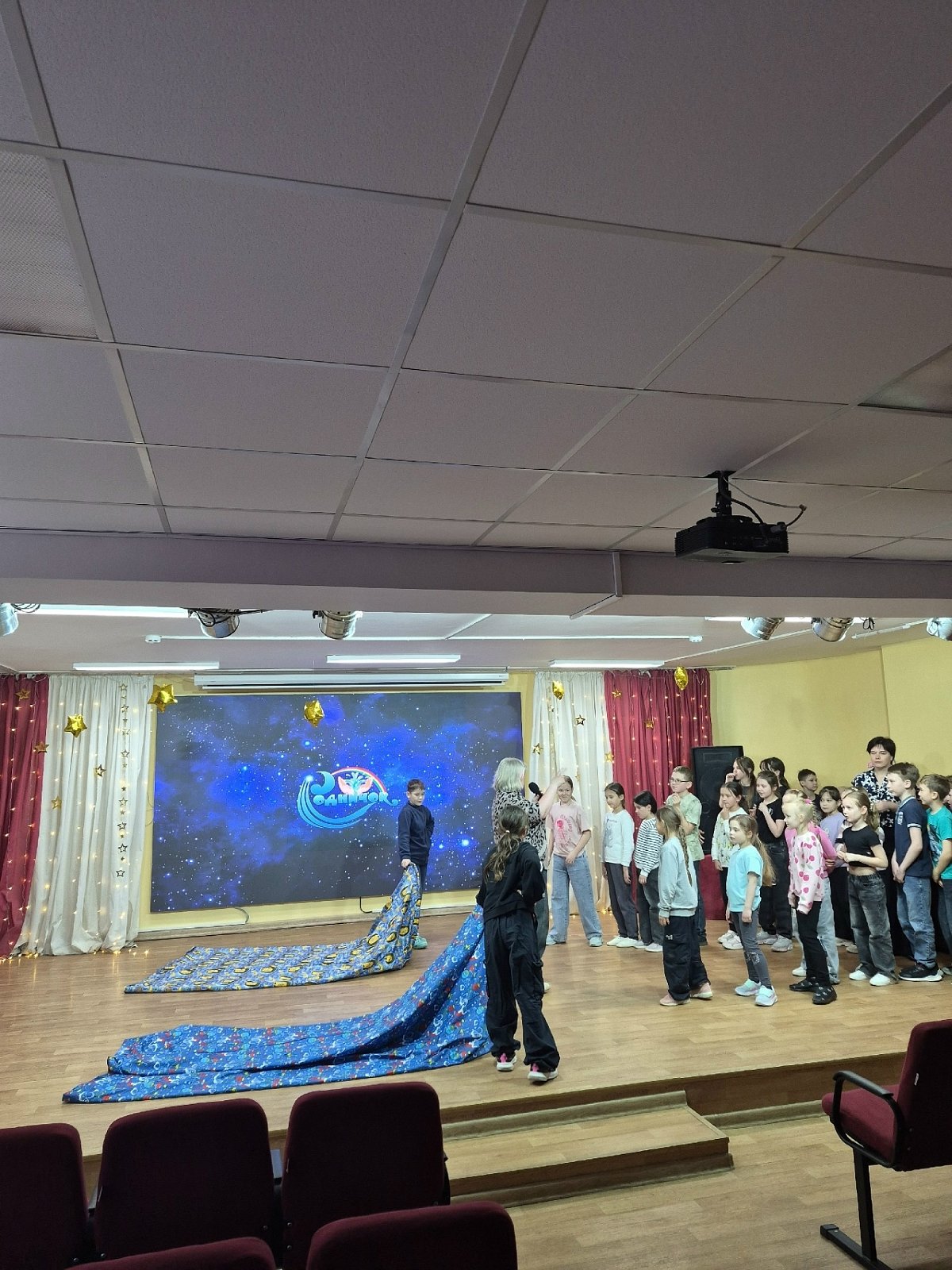 "Звёздное небо". Всё блестело и сверкало). Потом прошла весёлая игровая программа "Космические забавы", где дети приняли участие в разнообразных конкурсах и эстафетах! Вот это была активность!