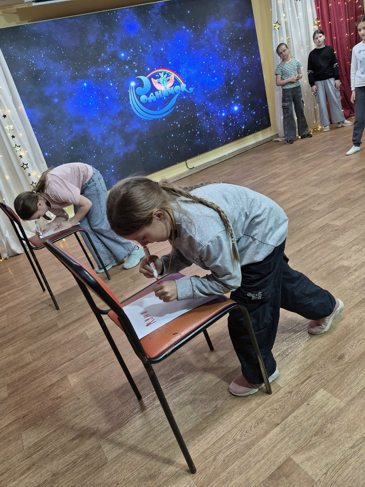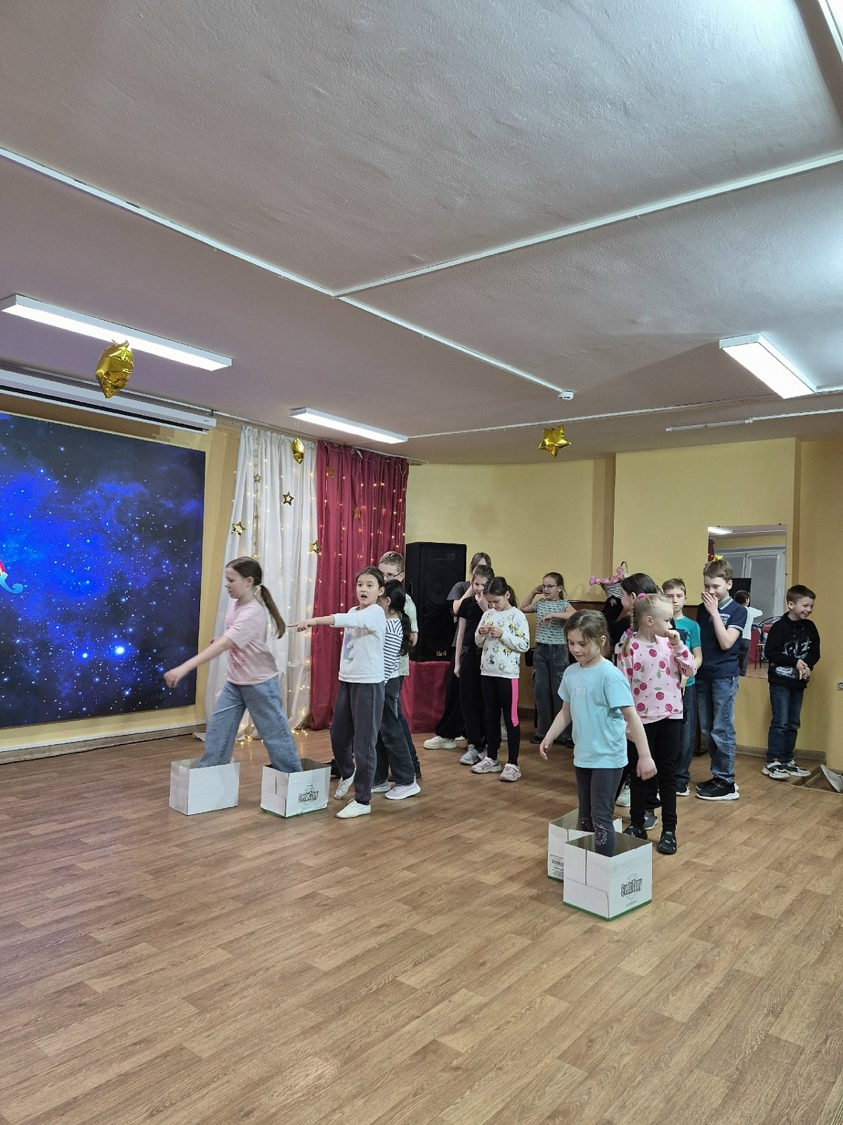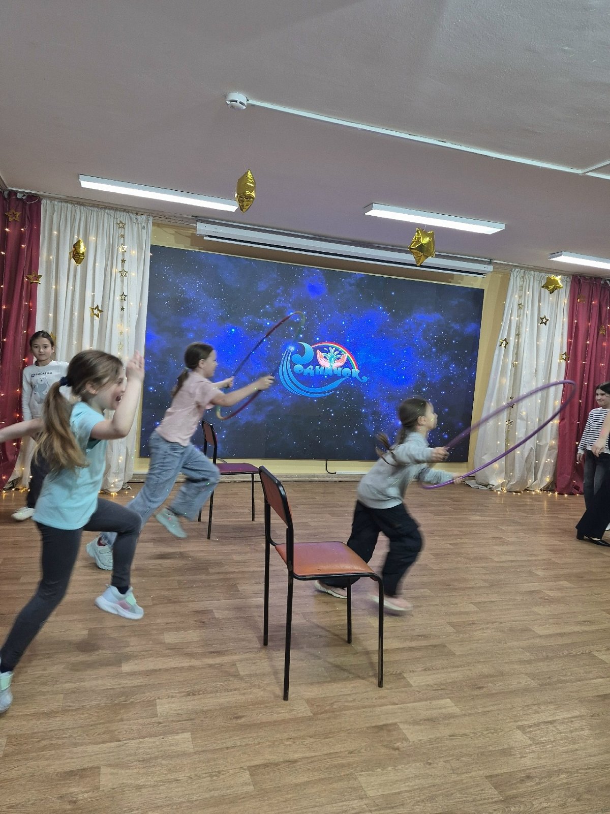 "Звёздное небо". Всё блестело и сверкало). Потом прошла весёлая игровая программа "Космические забавы", где дети приняли участие в разнообразных конкурсах и эстафетах! Вот это была активность!