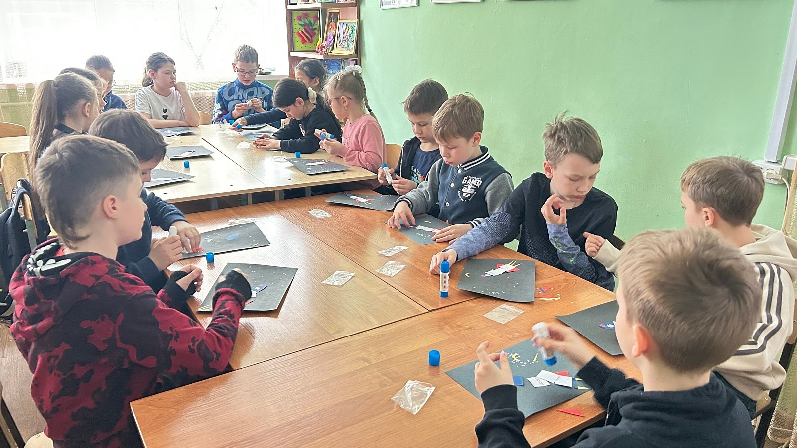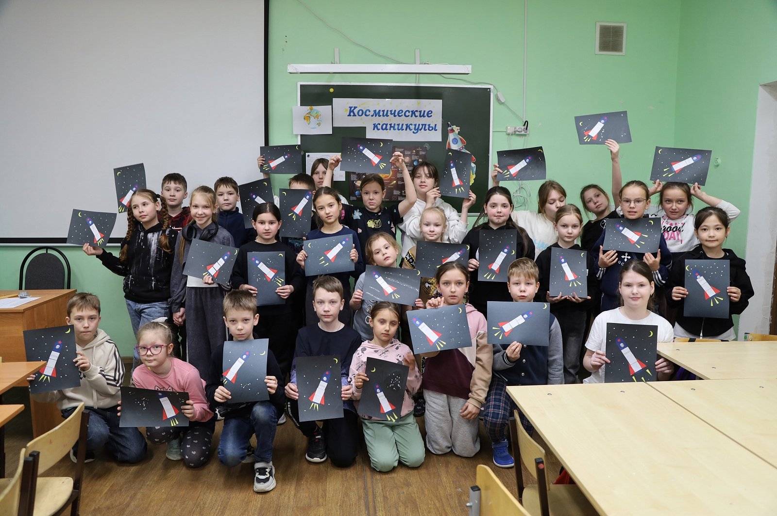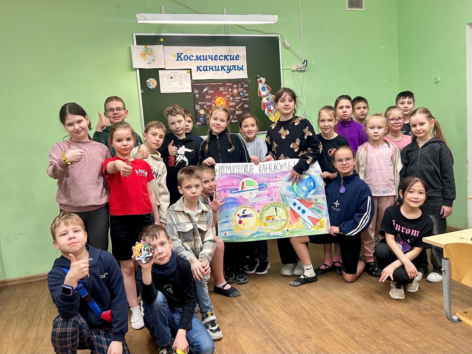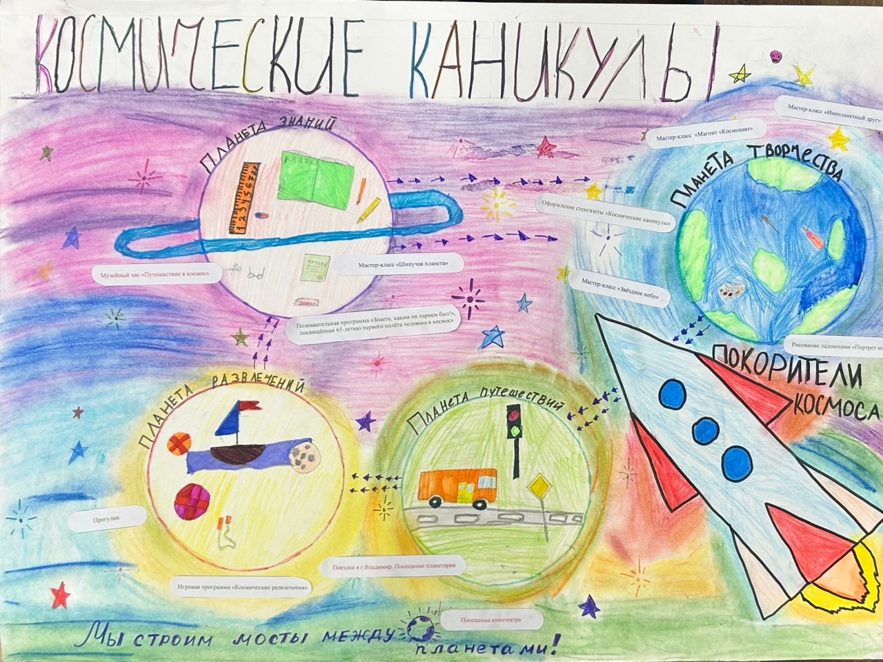 После обеда - рисование космической стенгазеты, ведь сегодня ребята посетили планету творчества и планету развлечений!