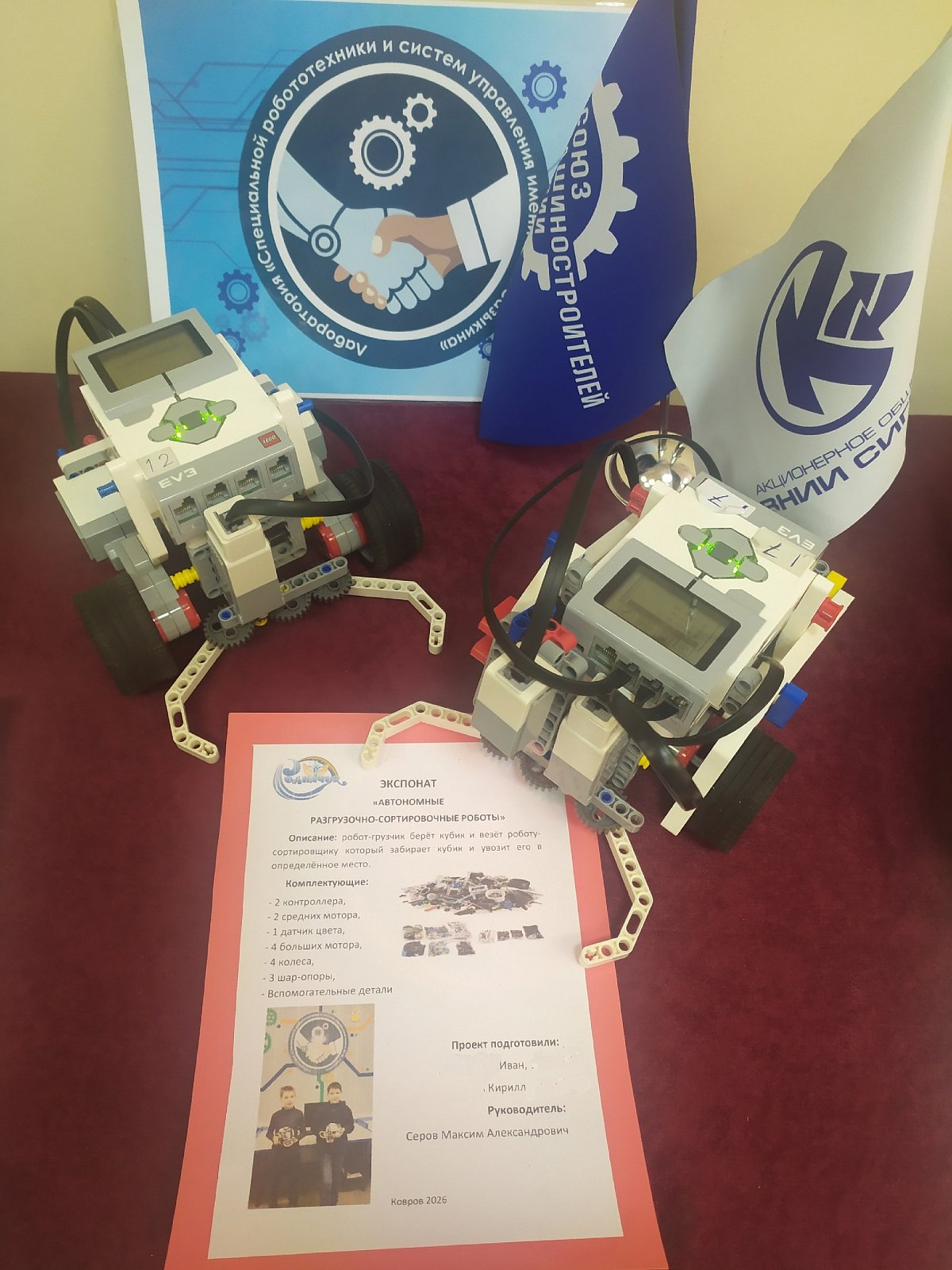 Для проекта ребята собрали и запрограммировали двух роботов, выполняющих разные функции.