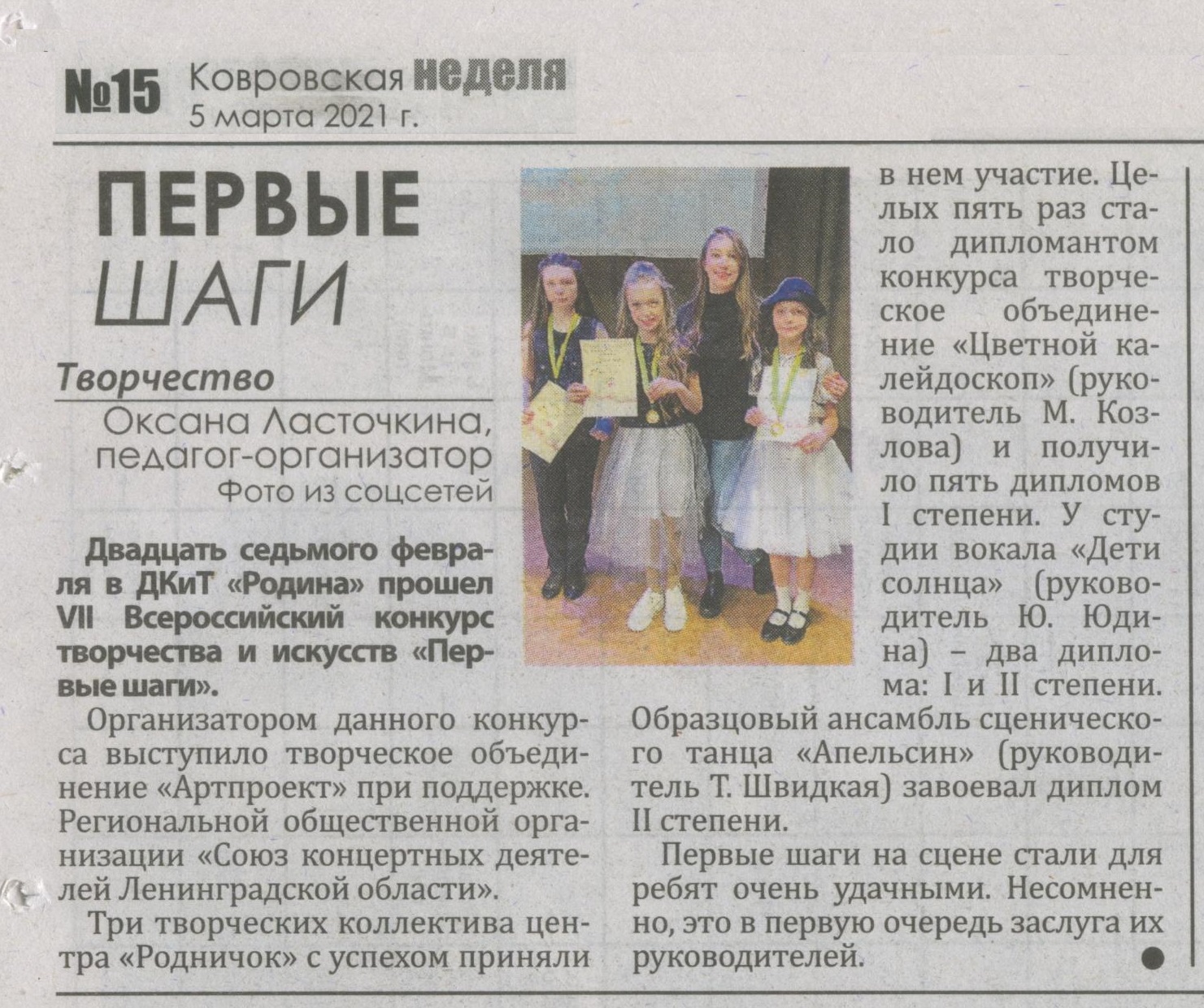 VII Всероссийский конкурс творчества и искусства "Первые шаги"