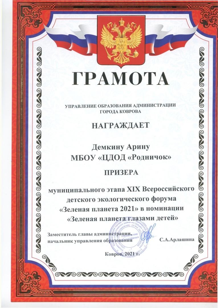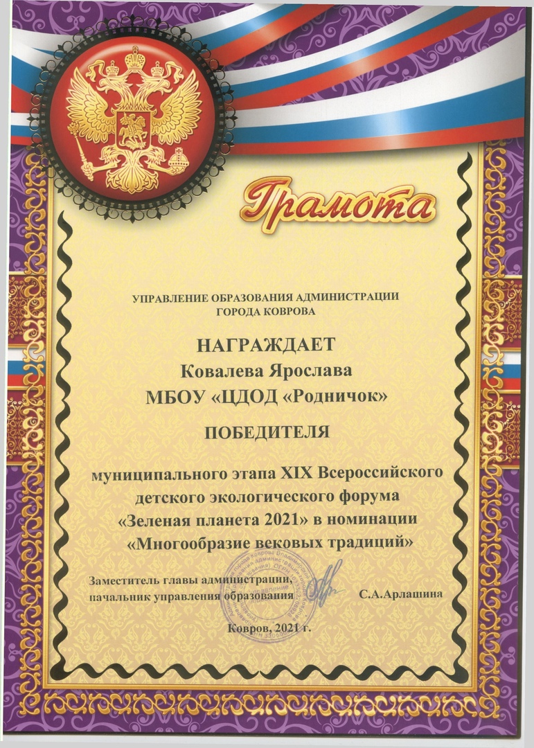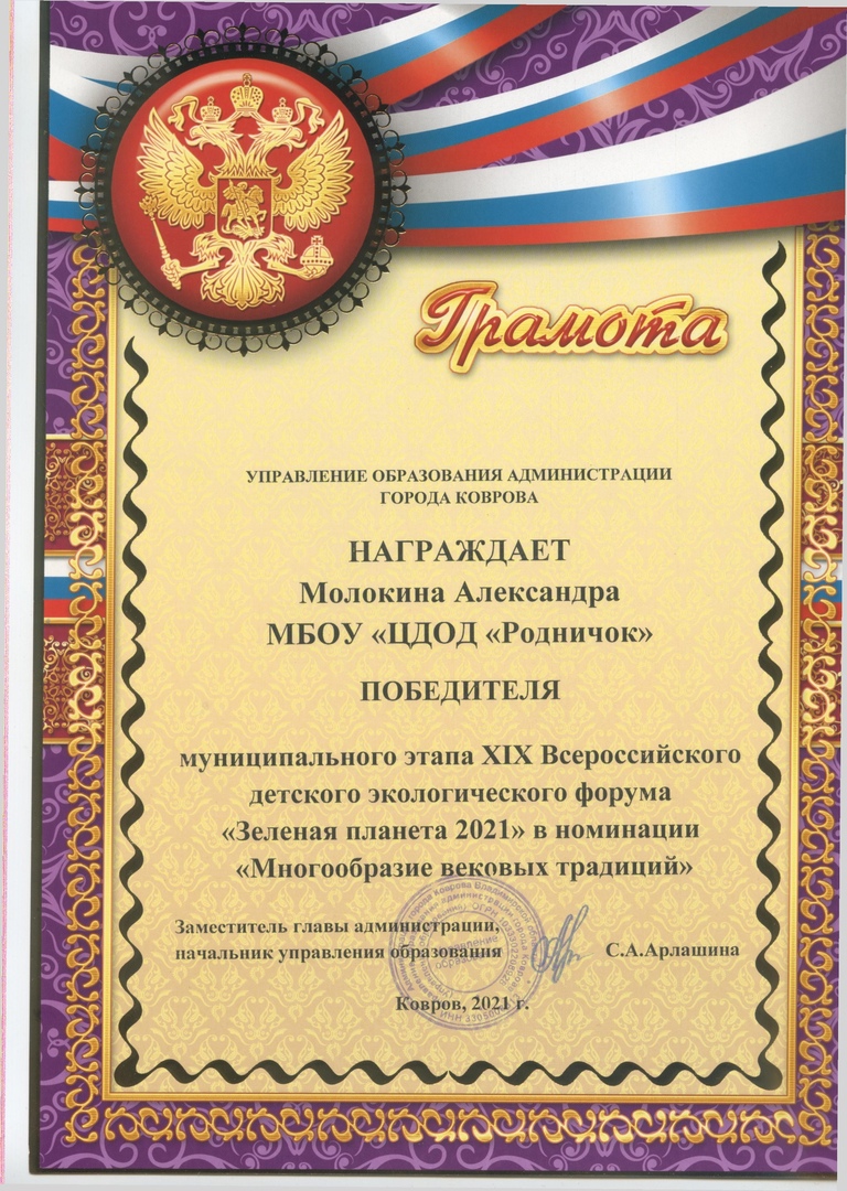 Поздравляем победителей и призера муниципального этапа Всероссийского детского экологического форума "Зеленая планета 2021",