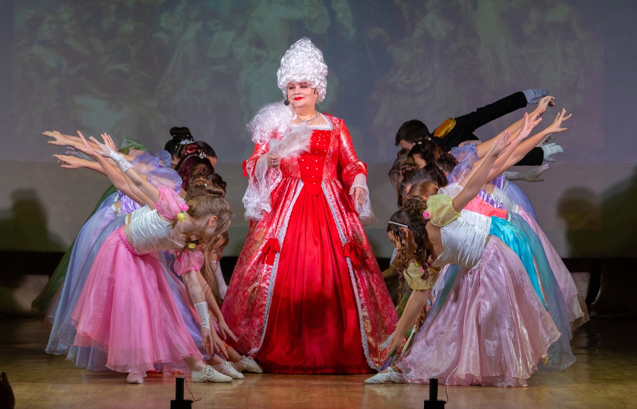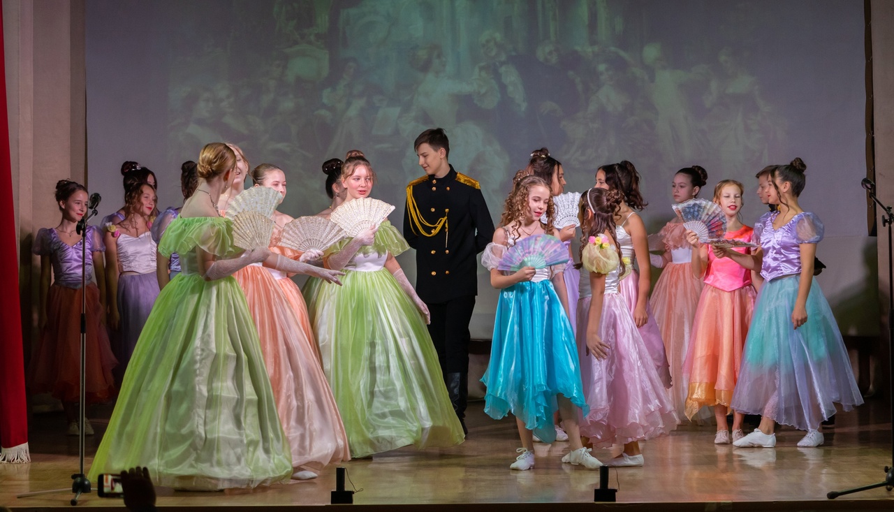 Была представлена театрализованная композиция того времени - картина бала (жизнь дворянства) и картина праздника купечества (жизнь народа).