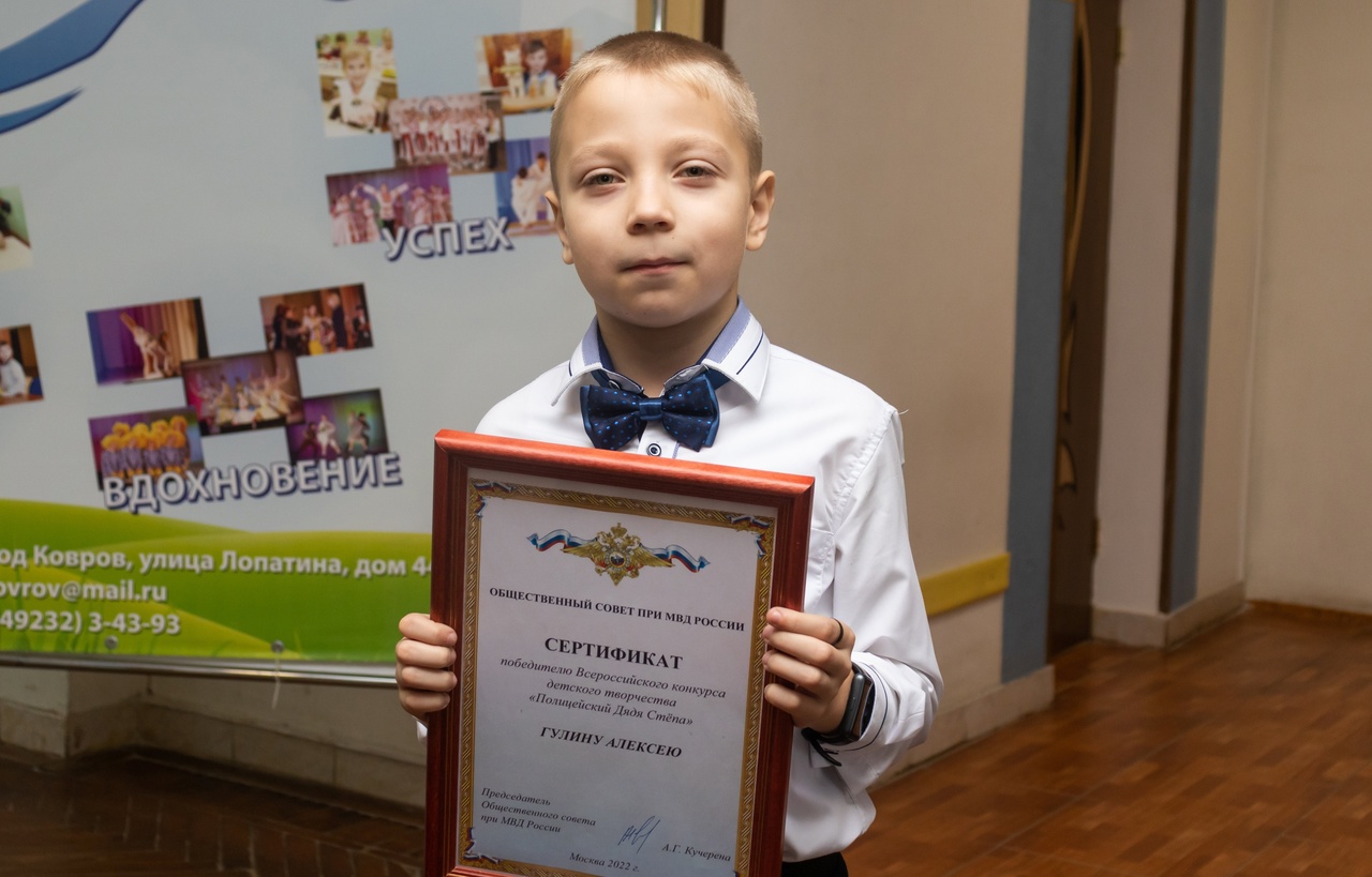 Поводом для визита стала ПОБЕДА нашего юного ковровчанина Алексея Гулина во Всероссийском конкурсе детского творчества «Полицейский Дядя Степа –2022».