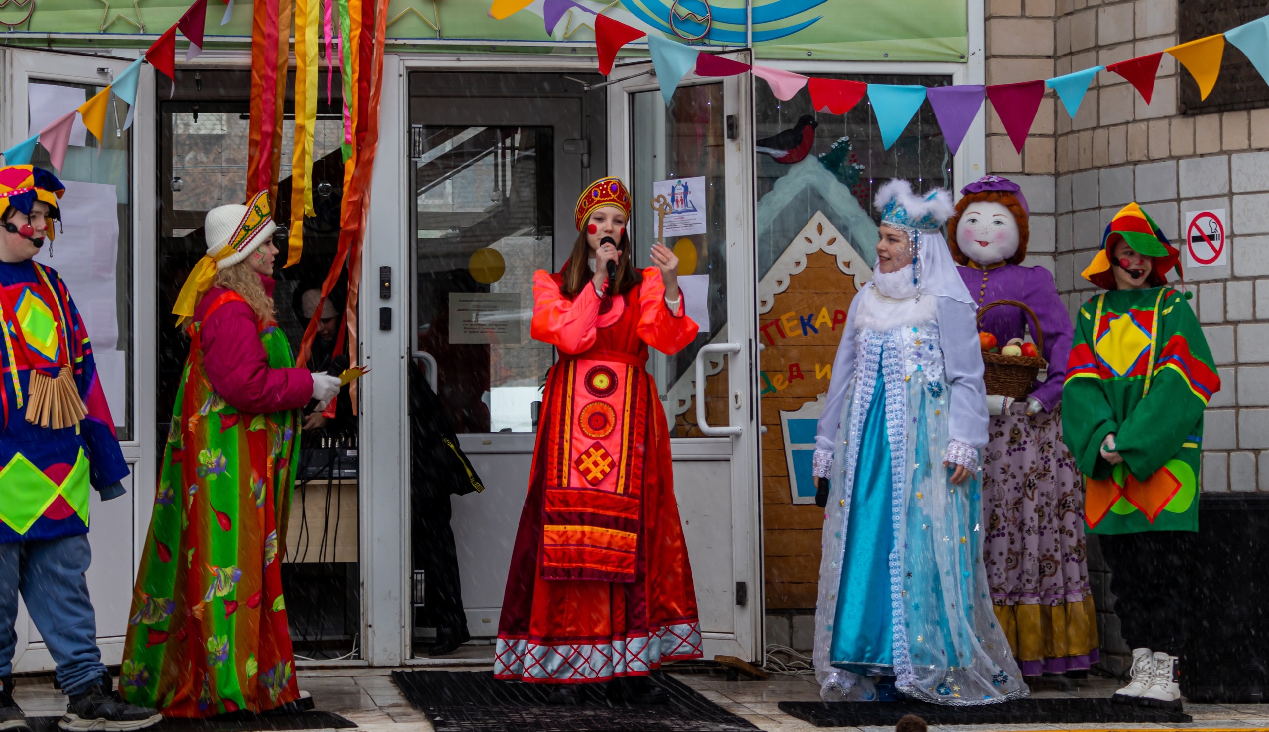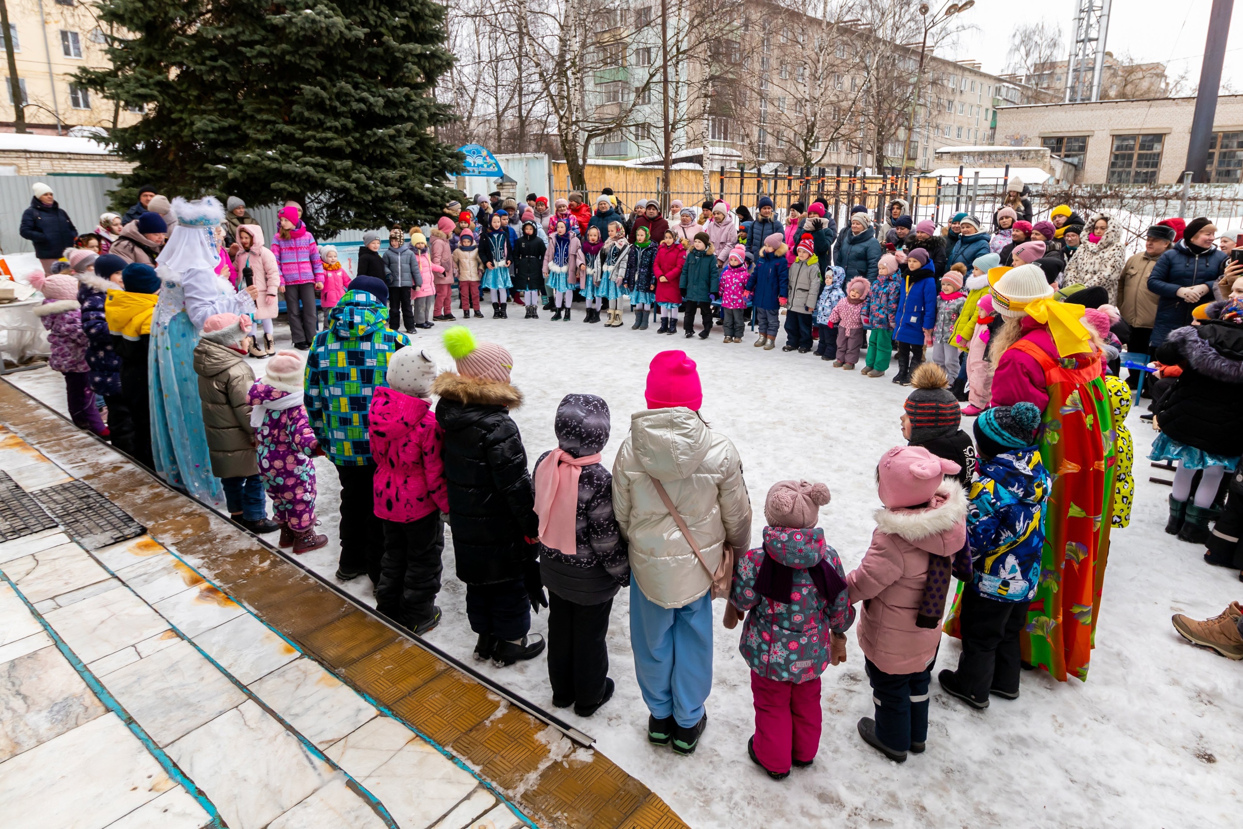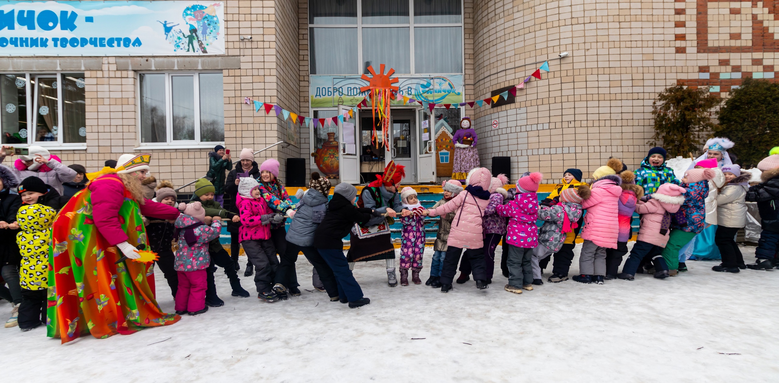 По традиции гуляния прошли на свежем воздухе: скоморохи, Весна, Зима и Баба Яга веселили народ. Звучали песни, шутки, загадки. Ребята исполняли народные танцы, водили хороводы, играли в игры и участвовали в конкурсах.