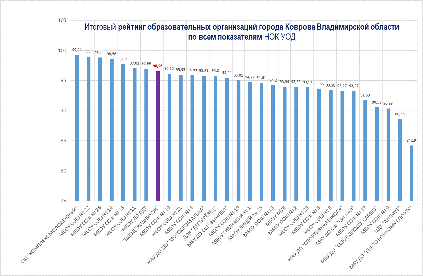 Рейтинговая оценка "ЦДОД "Родничок" по результатом НОК - 96,56%