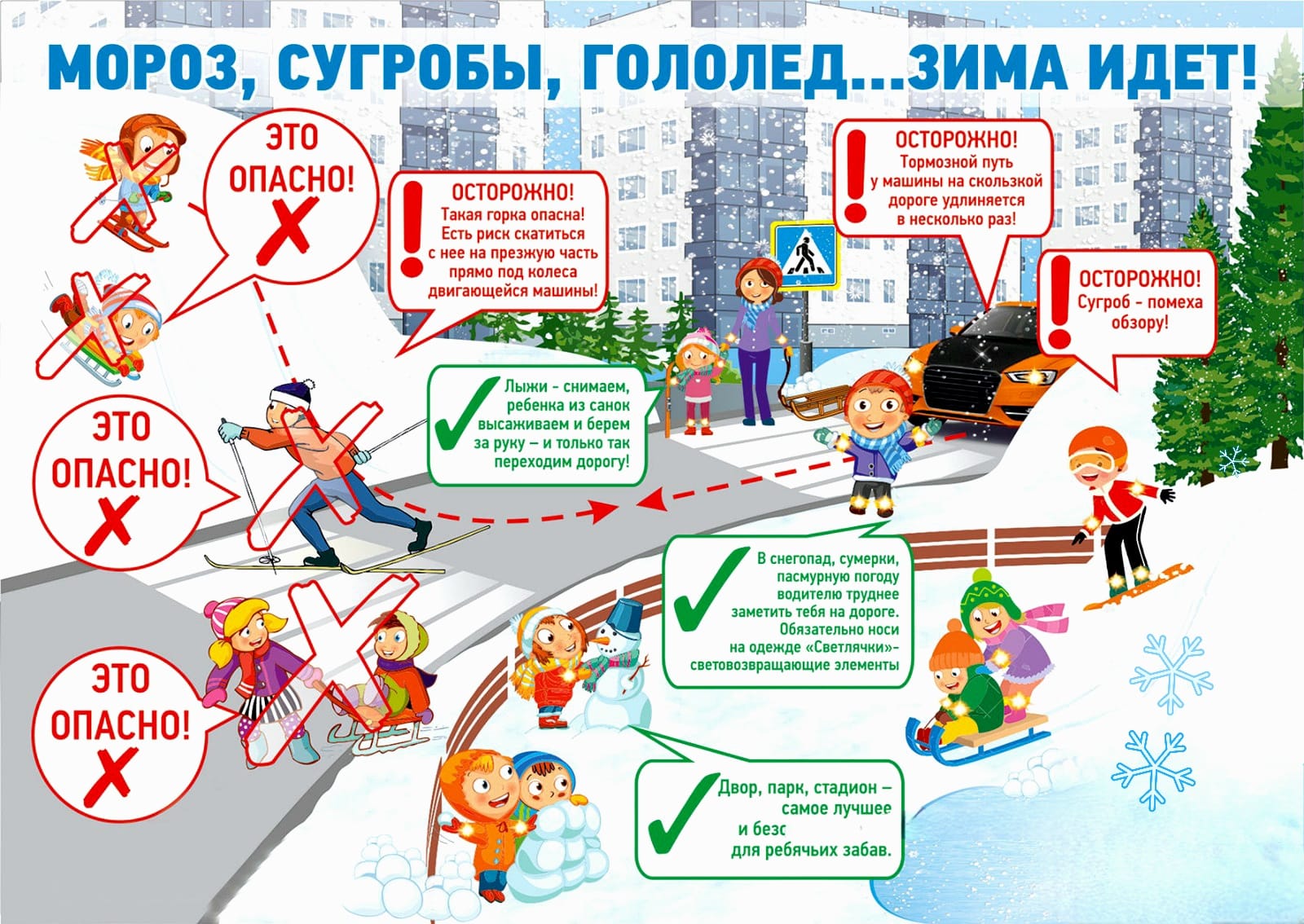 Зима - одно из самых веселых и разнообразных времен года. Сколько радости и положительных эмоций дарит детям прогулка на лыжах, спуск с горки на ватрушке или игра в снежки. Однако зима из-за короткого светового дня и скользких дорог требует от нас быть вдвойне внимательными возле проезжей части. Мы собрали основные правила безопасного поведения зимой на улице, которыми родители и дети должны руководствоваться ежедневно.