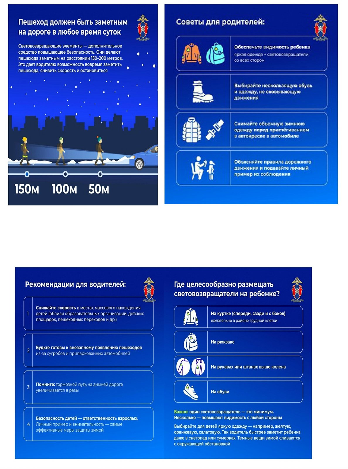 - Носите одежду со световозвращающими элементами. Один из самых простых способов сделать так, чтобы водители в темное время суток издалека замечали ребенка – носить одежду со световозвращающими элементами. Согласно данным ГИБДД, при езде с ближним светом фар водитель способен увидеть пешехода на расстоянии 25-50 метров. Если же пешеход применяет световозвращатель, то это расстояние увеличивается до 150-200 метров.