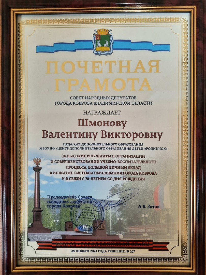 ПОЧЕТНОЙ ГРАМОТОЙ Совета народных депутатов города Коврова Владимирской области